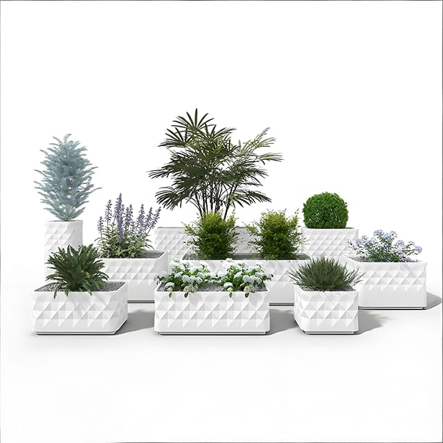 Beyond the signature modern white, this commercial corner planter is available in black, brown, and bespoke hues to match any decor. The diamond-textured finish pairs seamlessly with minimalist, industrial, or luxury styles, making it suitable for home balconies, hotel lobbies, or high-end storefronts. Whether you want to complement neutral interiors or make a bold statement, there’s a color option to suit your needs.