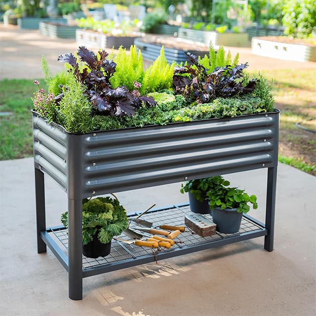 The high-leg stand is crafted from thickened steel tubing, providing robust support for the planting area and lower shelf. For select models, we’ve integrated heavy-duty universal wheels into the stand—each wheel features a lockable design to balance mobility and stability. The entire planter adopts a modular assembly structure, with precision-cut parts and easy-to-follow instructions, allowing tool-free setup in minutes. When not in use, it can be disassembled to save storage space.
